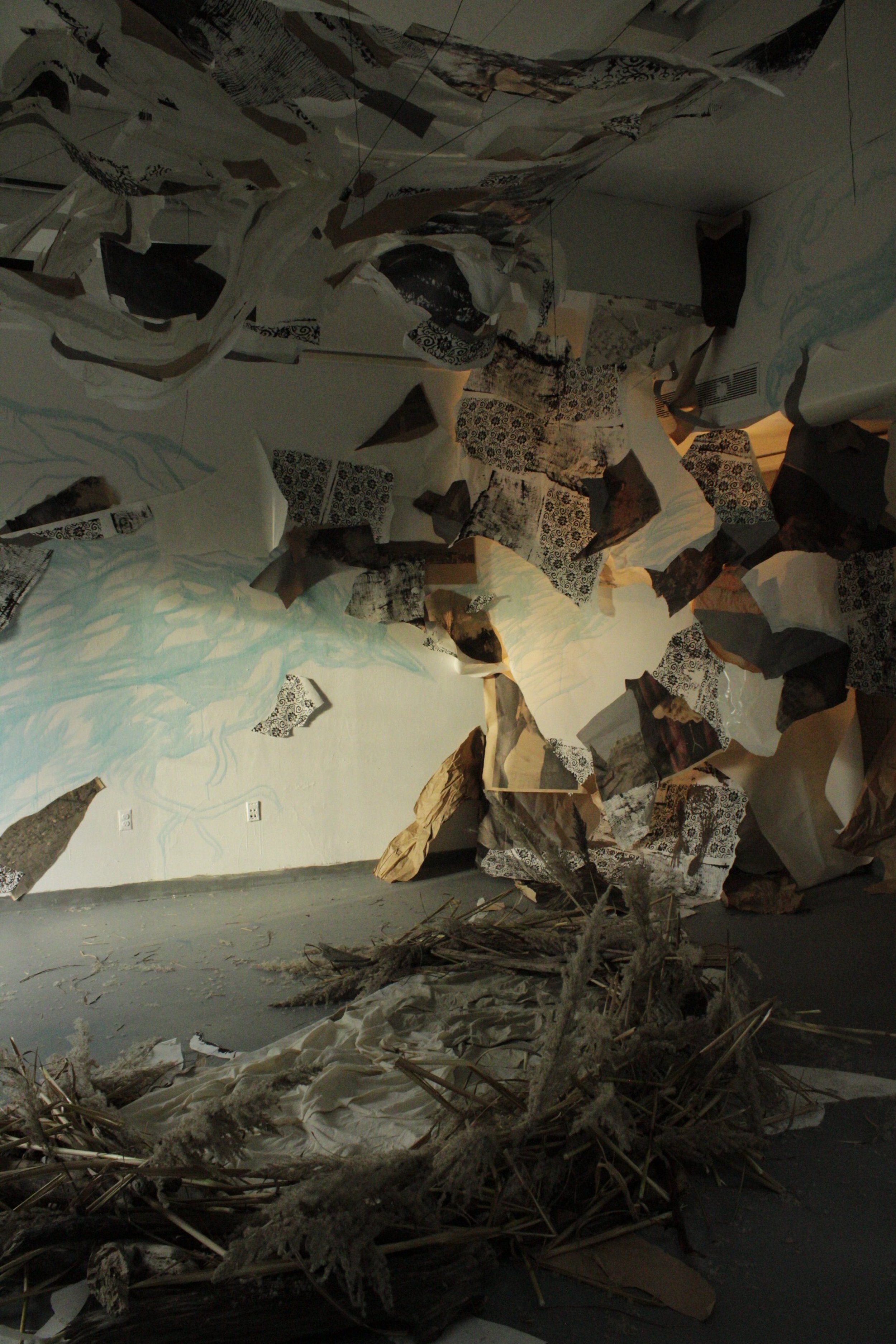 A collaborative installation exploring community, domesticity, and craft that is traditionally regarded as feminine utilizing digital prints, silkscreens, murals, sound, and sewing with Liz Cuminale, Mariella Lehner, and Faith Mikolajczyk.