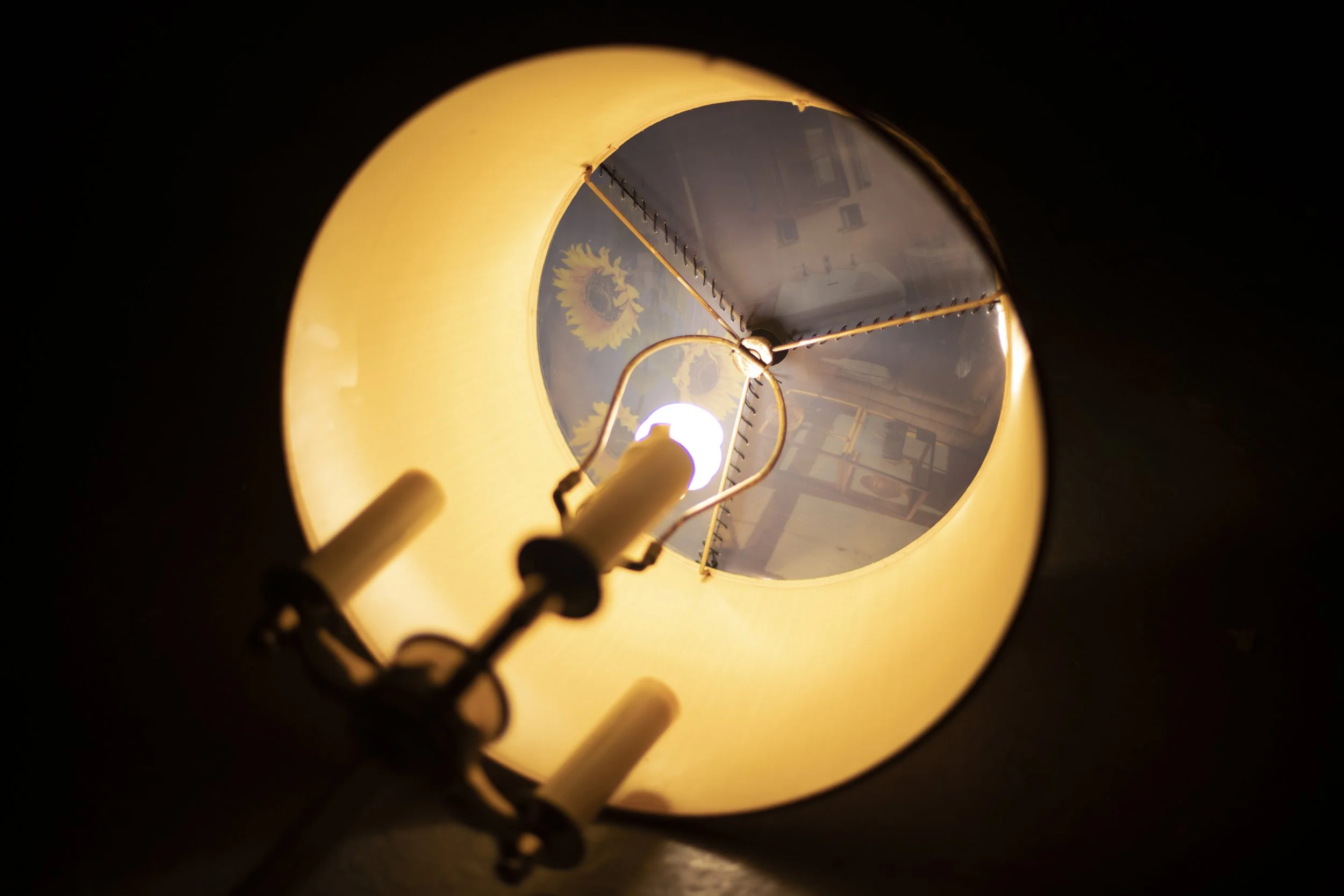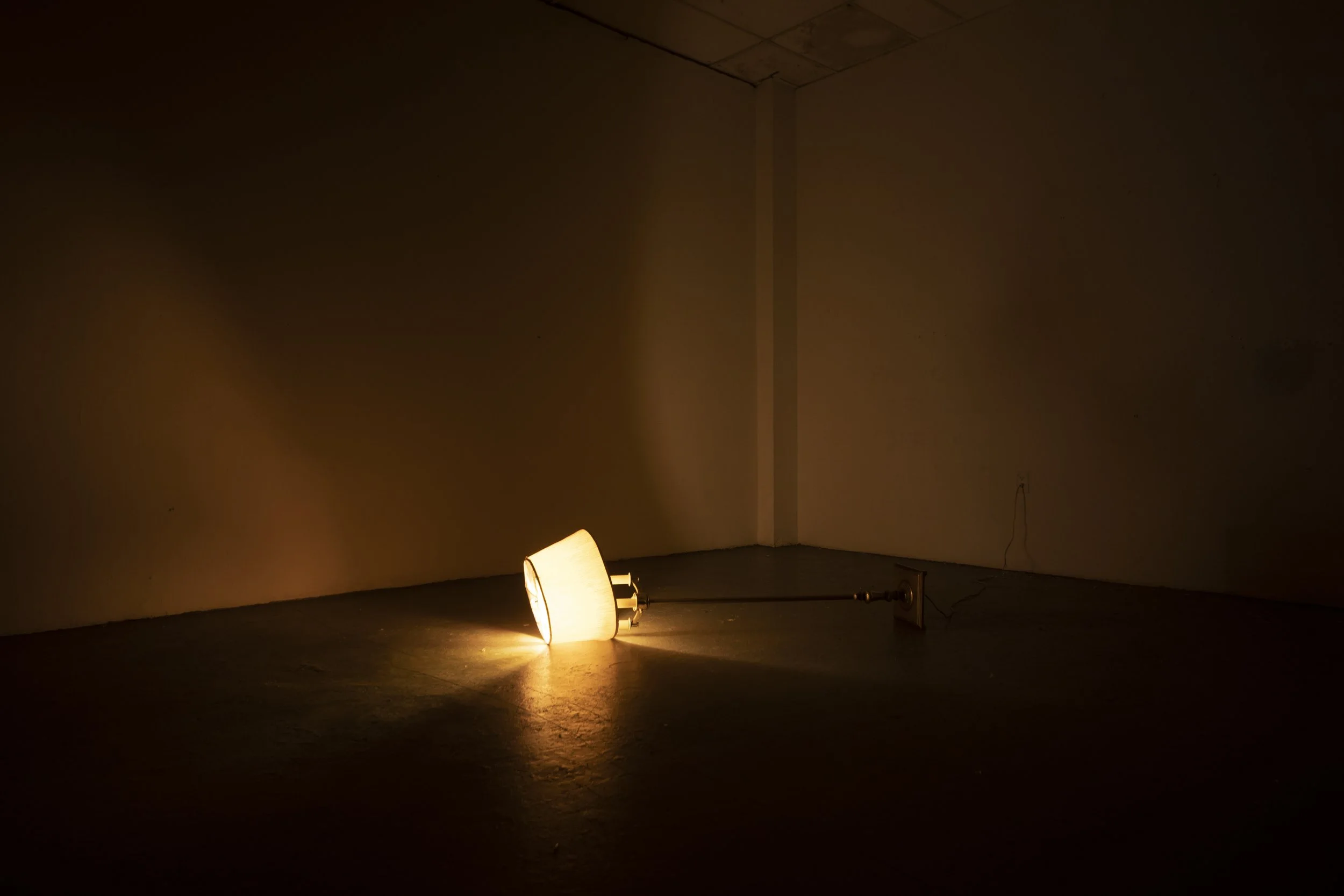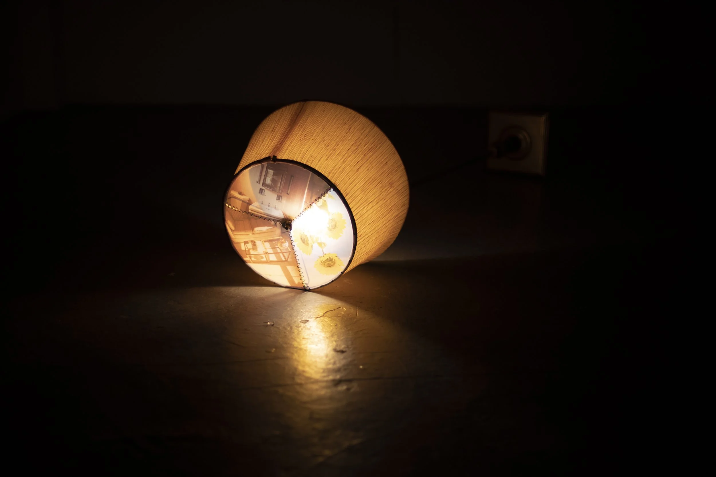 Within a dark room lit only by an overturned lamp, one is submerged in an almost deprivational experience. Entering and journeying further into the space, one is met with a quiet and indistinguishable murmuring from somewhere above. Drawing upon linguistic traditions of cooperative overlap, a hallmark of Ashkenazi culture, the sound piece aims to invoke distant, far-off conversations and stories not quite heard through walls and under blankets.